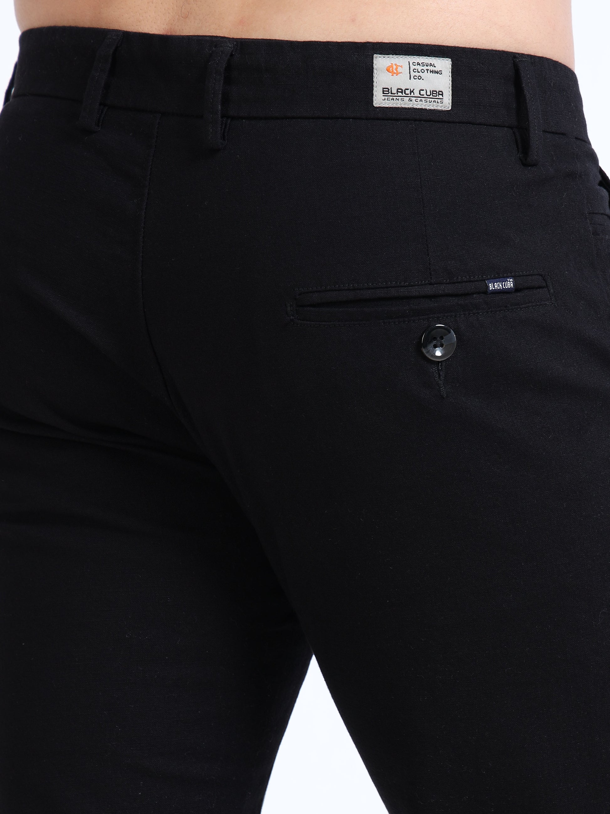 Men’s Slim Fit Black Casual Cotton Linen Trousers – Classic Wardrobe Essential